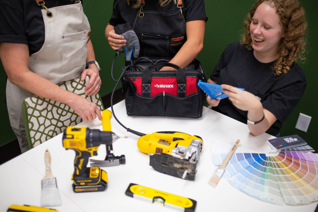 Our workshops can be used in a variety of ways. Any company can purchase a Renovation Workshop package to show appreciation to its favorite clients and customers. For example, if you’re a real estate agent, imagine offering a DIY class to your clients who have recently purchased a home. In addition, companies can build team building skills, like communication and collaboration, as their employees learn to work together on DIY projects. Another option could be a Renovation Workshop Party with family and friends, where members can have fun learning useful home improvement and basic DIY skills in our maker space classroom, your home or at your favorite brewery or coffee shop. Finally, our classes can prepare you with the skills necessary to start your own business or get hired in the construction industry.